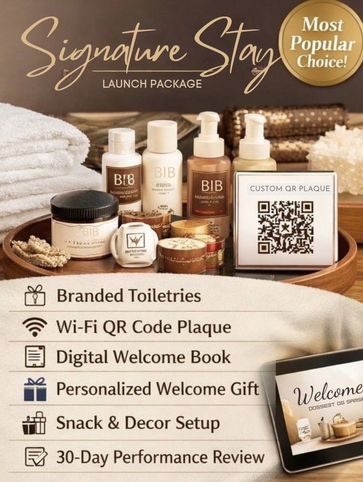 Our Signature Stay Launch Package helps create the small details guests notice immediately— the difference between a standard rental and a professional hosting experience.